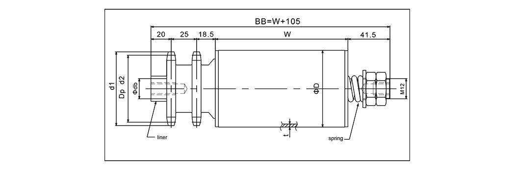 | Jenis | Saiz roller | Lebar roller | Bahan roller | Galas | Diameter aci | Saiz pelapik | Hancurkan | d1 | d2 |